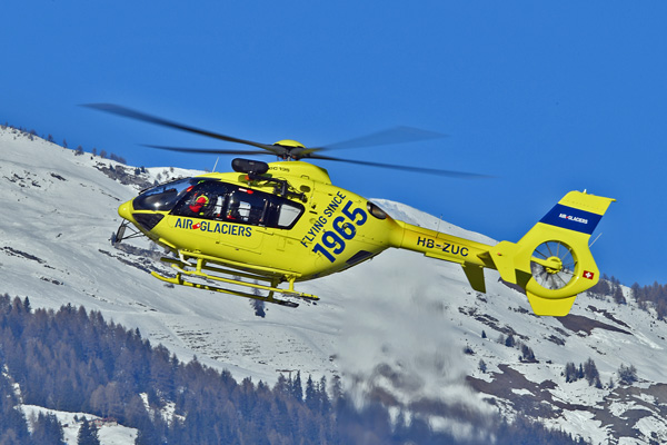3 of 4 Air-Glaciers EC-135 @ Sion Hospital today, A ski season begin